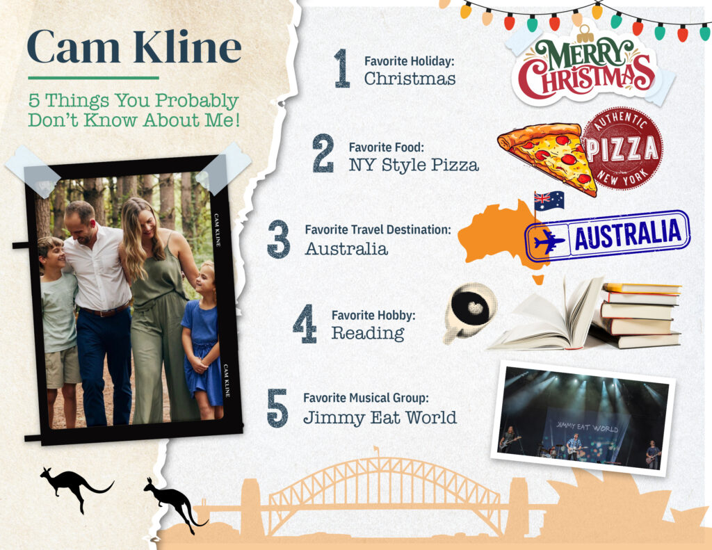 Outside of work, Cam is a devoted family man with a wife, son, and daughter. He loves coaching their sports teams, nurturing their passions, and spending quality time together. Cam is also a dedicated sports fan of the Kansas City Chiefs, Oklahoma City Thunder, and F1 driver Max Verstappen. He enjoys playing fantasy football, reading, trying new restaurants, and traveling.
