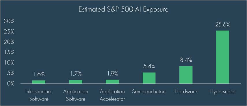 Meanwhile, the ongoing AI-driven investment cycle continued to dominate earnings and capex trends in the larger names, with five hyperscalers – NVIDIA, Microsoft, Amazon, Meta, and Google – now representing roughly 25% of the S&P 500 Index. These five companies are projected to drive nearly three-quarters of total corporate capital expenditure growth in the S&P 500 over the next three years. While these hyperscalers are extremely profitable and able to finance these expenditures from existing cash flows, the significant level of investment does create some concerns over the sustainability of the AI rally and the long-term return on the companies’ investments.
